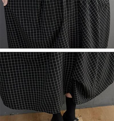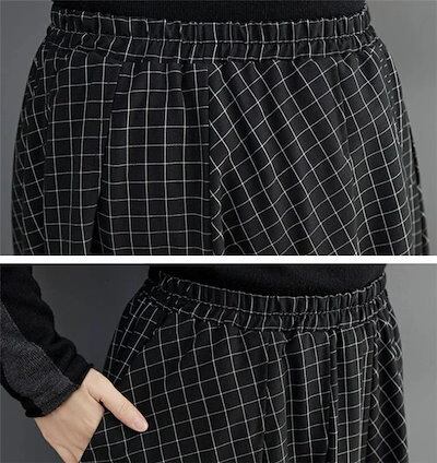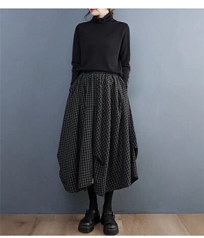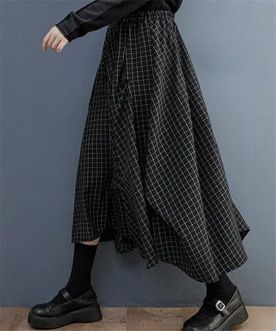 フレアスカート レディース スカート 春 膝下 ロングスカート チェック柄 ロング丈 体型カバー 大人 きれいめバルーンスカート ウエストゴム 黒 着痩せ 着回し 大きいサイズ