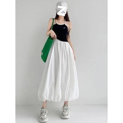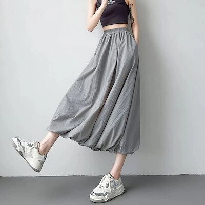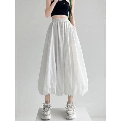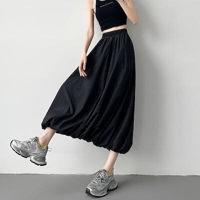 バルーンスカート 半そでスカート レディース カジュアル ウエストゴム スリム ドレープ ロングスカート