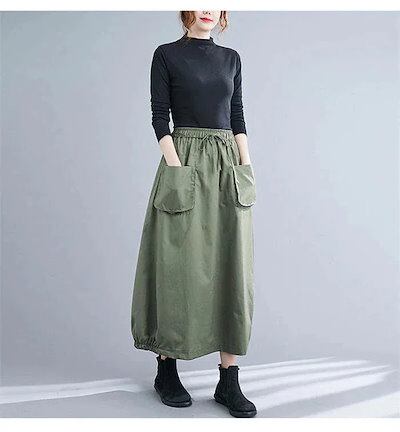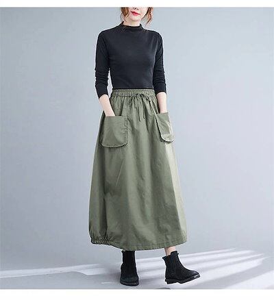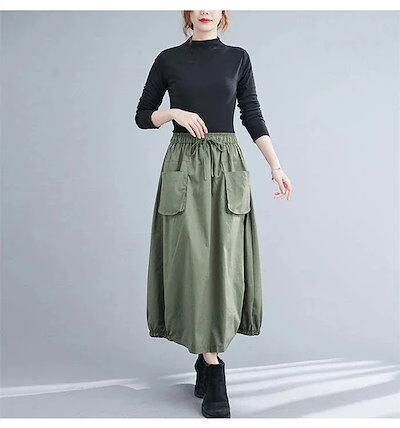 スカート ロング スカート バルーンスカート ロングスカート Aライン レディース ボトムス ロング丈 春 春服 ウエストゴム aライン 体型カバー 着痩せ 通勤 OL 無地 大きいサイズ おしゃれ