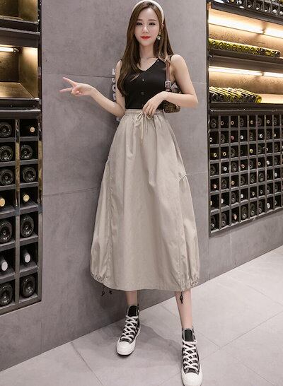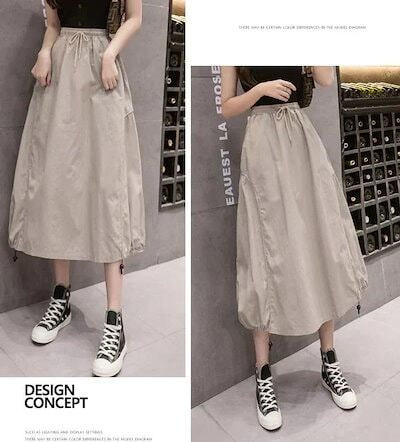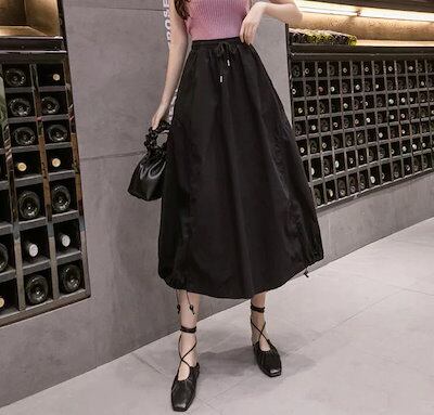 バルーンスカート コクーンスカート レディース ミモレ丈スカート ひざ丈 ロング カジュアルスカート ウエストゴム ナチュラル ハイウエスト 可愛い おしゃれ ボ