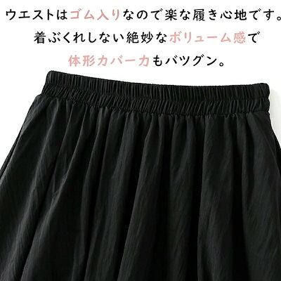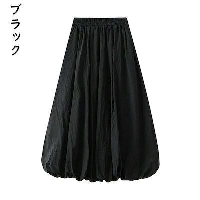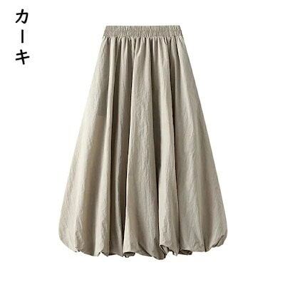 【6月の大上新】バルーンスカート ロング スカート レディース Aライン 春 夏 ポケット付き ハイウエスト ウエストゴム ふんわり 着痩せ 体型カバー ロングスカート無地 ライニングあり新作
