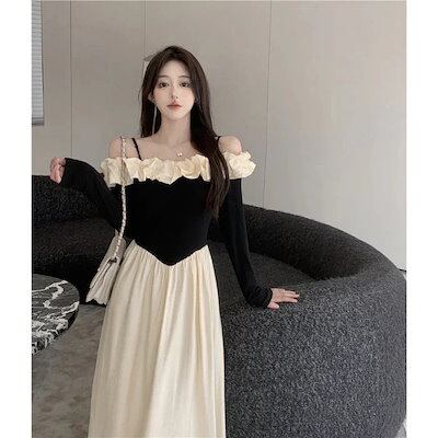 【急速出荷!】韓国 ワンピース レディース キャミソールワンピース女性25新型ウエストコンシャスロングスカート シャツワンピース パーティードレス
