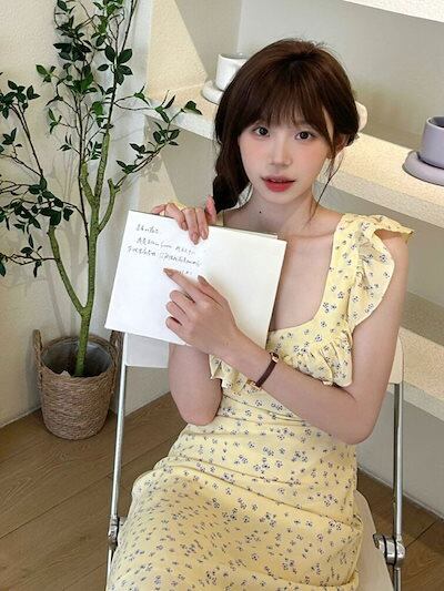 ヘビロテ!キャミワンピースドレス レディース 夏 新作 花柄 スクエアネック フリル ウエスト ロングスカート