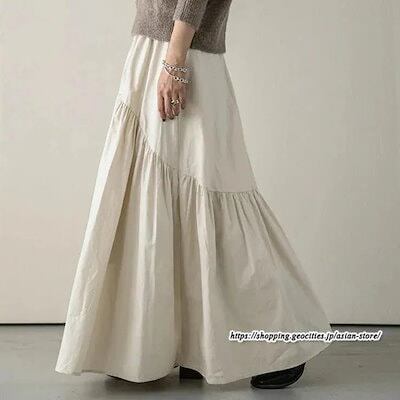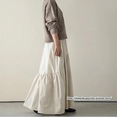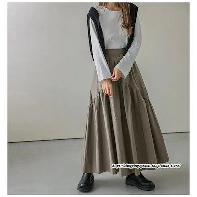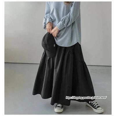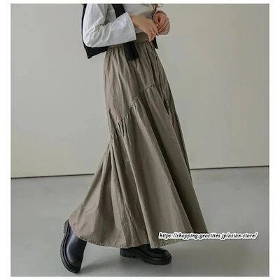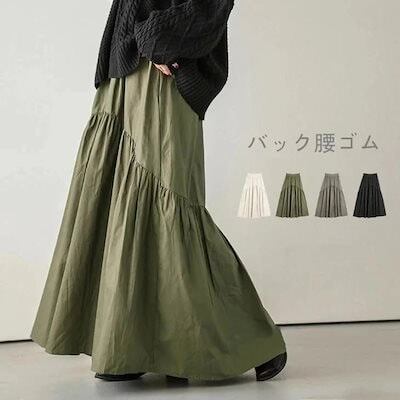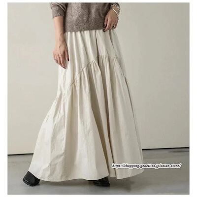 ロングスカート フレアスカート 綿スカート ウエストゴム ハイウエスト aラインスカート ワイド 体型カバー 無地大人 ギャザー レディース 秋物 春秋