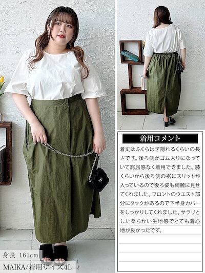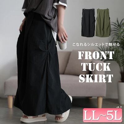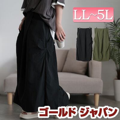 ゴールドジャパン大きいサイズ レディース スカート ボトムス フロントタックナイロンナロースカート ロングスカート ナロースカート ロング ナロー タイト ナイロン タック ポケット ウエストゴム スリット 無地 夏