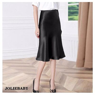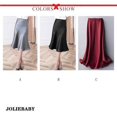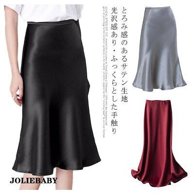 サテン ロングスカート サテンスカート ウエストゴム ミモレ丈 マーメイド フレア スカート レディース フェミニン ロング 春 秋