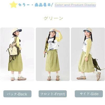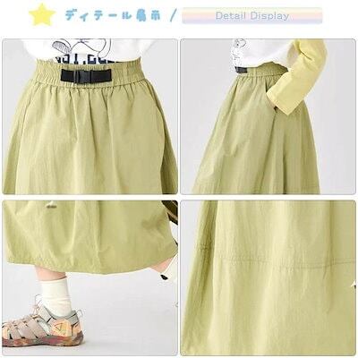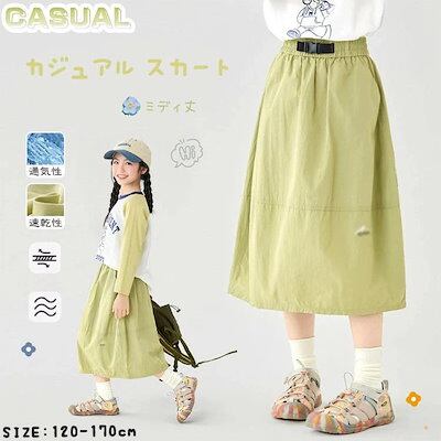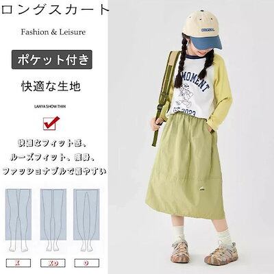 【夏の新品】【出荷が迅速】キッズ スカート カジュアルスカート 緑色 グリーン 七分丈 ロングスカート ウエストゴム ポケット付き 春 夏 秋 韓国 大きいサイズ 120cm 130cm 140cm