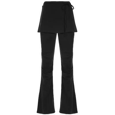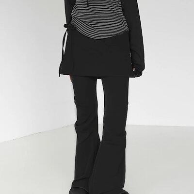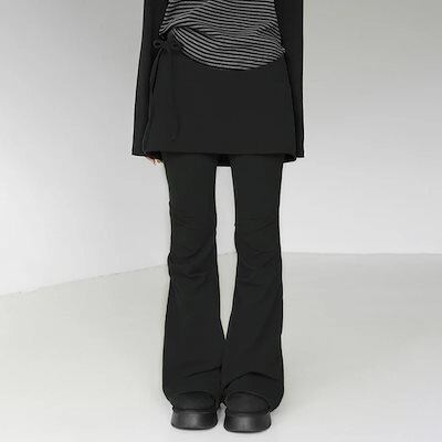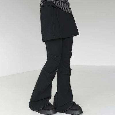 2025春夏 パンツロング丈 ハイウエストゆったりストレートモップウエストゴム K-POP風脚長美脚効果細見えカジュアル黒韓国系ファッションレディースサイドお出かけおしゃれ かわいい衣装
