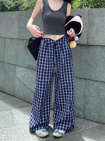 2025春夏 パンツロング丈ストレート ウエストゴム ハイウエストゆったり 脚長効果美脚効果細見え春カジュアル 黒白韓国系ファッションレディースサイドお出かけおしゃれ かわいい衣装 トラック