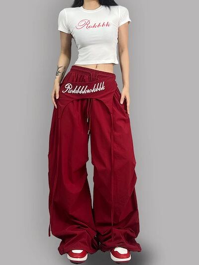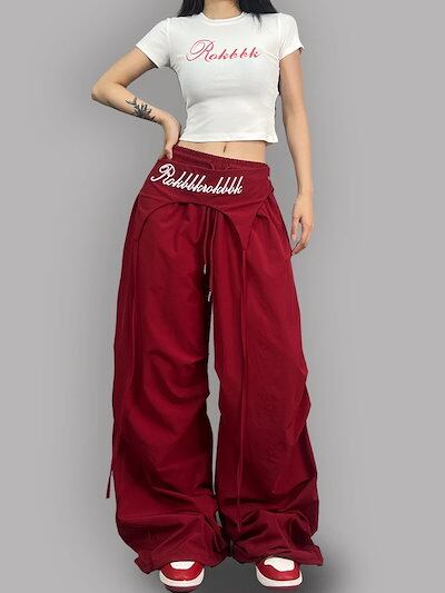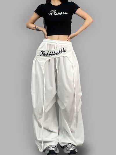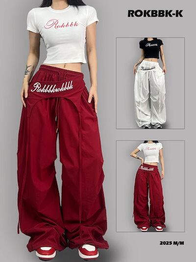 2025春夏 パンツロング丈ストレート ストライプウエストゴム ハイウエストゆったり 脚長効果美脚効果細見え春カジュアル 黒白韓国系ファッションレディースサイドお出かけおしゃれ かわいい衣装 トラック