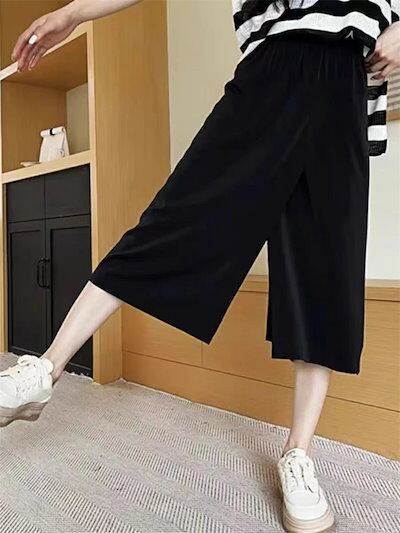 キュロットスカート パンツ レディース 春夏 ワイドパンツ 八分丈 ワイド ハイウエスト イージーパンツ ウエストゴム 楽ちん ボトムス ズボン ゆったり 体型カバー 着?せ おしゃれ 美脚 ナチュラ