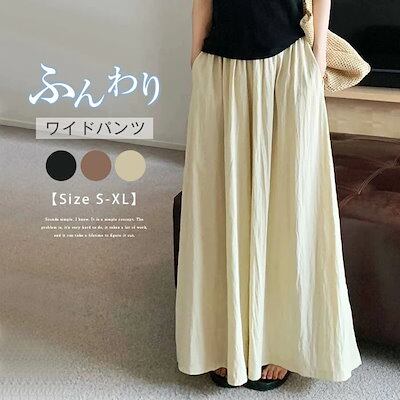 ワイドパンツ レディース 春夏 パンツ ガウチョパンツ フレアパンツ 大きいサイズ 薄手 スカート見える ロングパンツ 爽やか ウエストゴム キュロットスカート ギャザー イージーパンツ 美脚 サマー