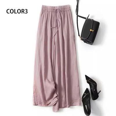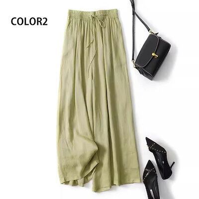 ワイドパンツ レディース 大きいサイズ ロングパンツ 夏 春 スカート風 パンツ ガウチョパンツ ロング ワイド ハイウエスト ウエストゴム リボン ボトムス ポケット付き スカーチョ ゆったり ズボ