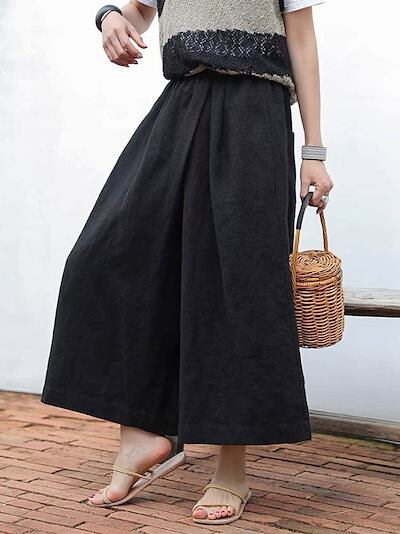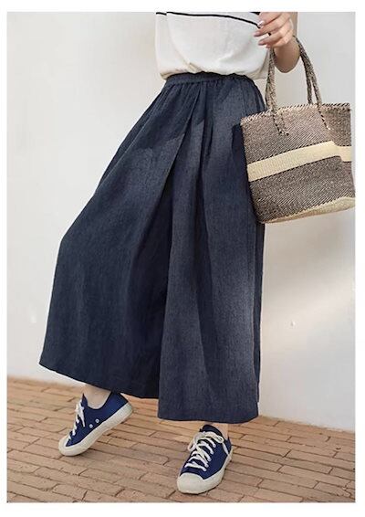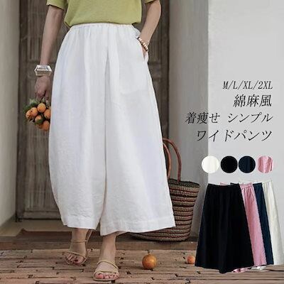 ワイドパンツ パンツ ガウチョパンツ レディース 夏 ロングパンツ ガウチョ スカート見え ふんわり ウエストゴム 大きいサイズ 九分丈 ボトムス イージーパンツ ポケット付き 揺れる 薄手 ゆったり