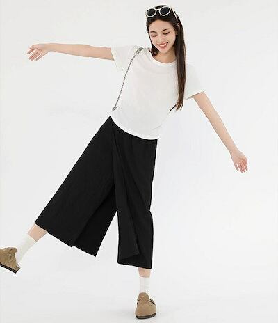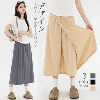 ワークパンツ カーゴパンツ レディース スカート付きパンツ デザイン テーパード テーパードパンツ ハイウエスト ウエストゴム 無地 カジュアルパンツ 春夏 新作 シンプル