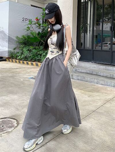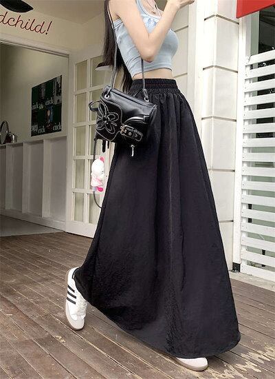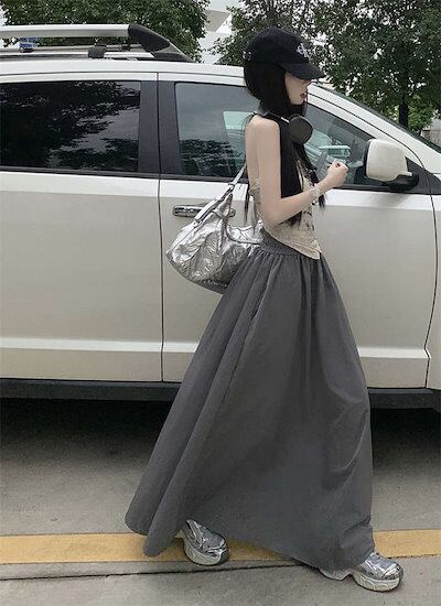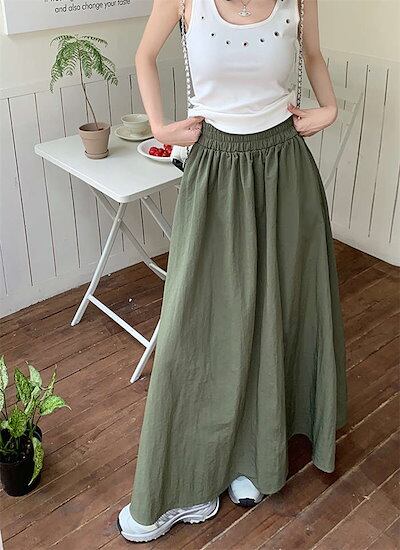 ロングスカート レディース 春 夏 秋 無地 カーゴ ロング ボトムス マキシスカート カーゴスカート ウエストゴム ポケット 体型カバー フレア Aライン アウトドア ゆったり 大きいサ
