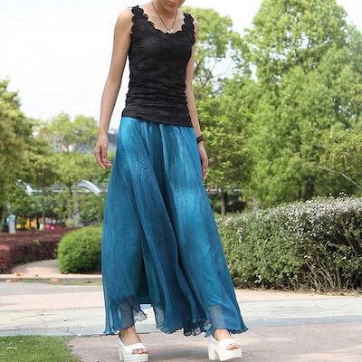 シフォン マキシスカート レディース シフォンスカート ミモレ丈 フレアスカート ロング丈 ハイウェスト スカート 春 ロングスカート