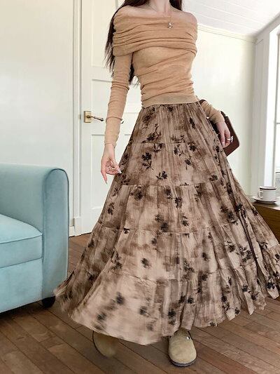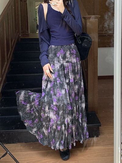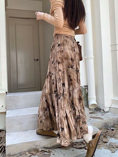 プリーツスカート 花柄スカート ロングスカート マキシ丈スカート 春 レディース スカート 花柄 ボトムス フレア ハイウエスト ウエストゴム 高見え ゆったり おしゃれ ガーリー キレイ