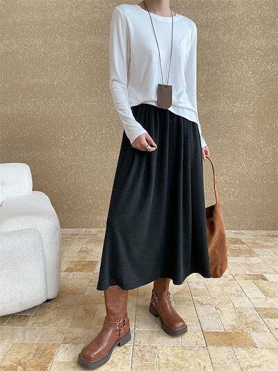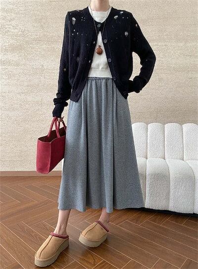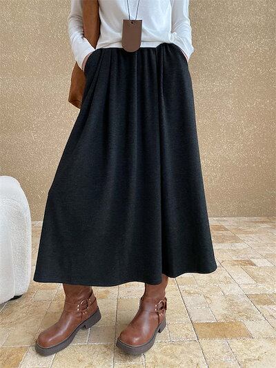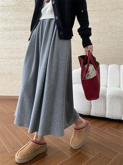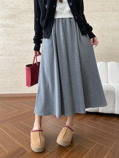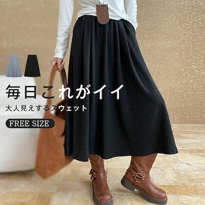 スカート レディース フレアスカート ロングスカート スウェット 春 夏 秋 冬 マキシスカート ロング スエット オールシーズン ウエストゴム ロング丈 シンプル ゆったり ポケット お出