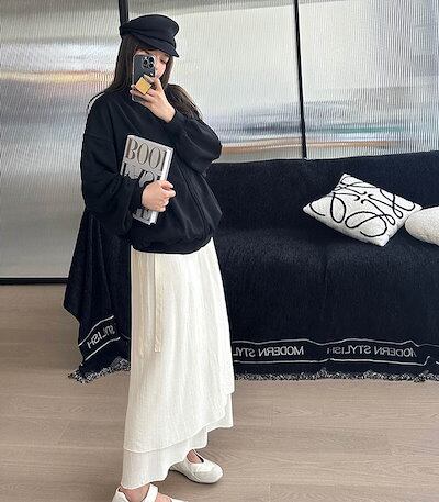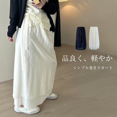 ラップスカート スカート レディース ボトムス ロング ラップ フレア フレアスカート ロングスカート 無地 レイヤード 重ね着風 巻きスカート ウエストゴム 高見え 上質 ゆったり アシンメトリー