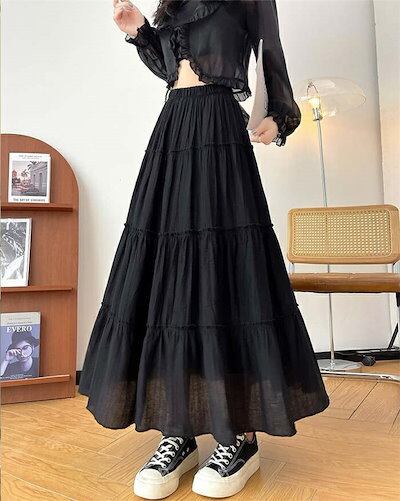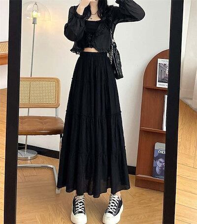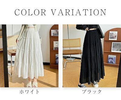スカート レディース ロングスカート ボトムス 夏 春 秋 フレアスカート 無地 着痩せ ギャザー ティアードスカート リラックス シンプル Aライン ゆったり 楽ちん ウエストゴム おし