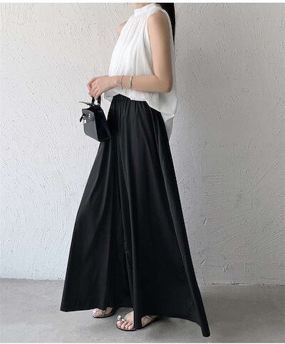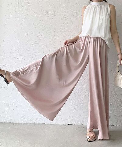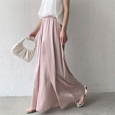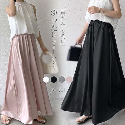 パンツ ワイドパンツ ボトムス フレアパンツ 春 夏 無地 ロング丈 ゆったり ロングパンツ パンツスカート ガウチョパンツ ハイウエスト スカーチョ レディース 体型カバー ふんわり ウエストゴム