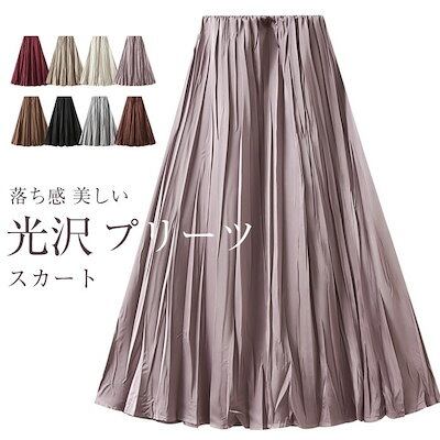 スカート プリーツ プリーツスカート レディース ボトムス ロングスカート ロング マキシ マキシスカート 軽量 長い 体型カバー フレア ゴム ウエストゴム Aライン 無地 薄手 春 大きいサイズ