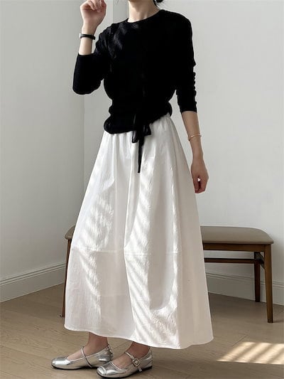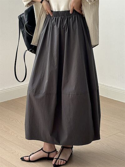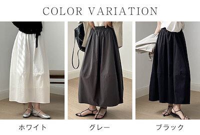 スカート ロング バルーンスカート レディース ボトムス きれいめ ロングスカート ミモレ丈 バルーン コクーンスカート コクーン マキシスカート ウエストゴム 裏地付き ドッキ