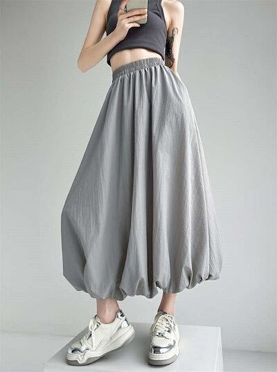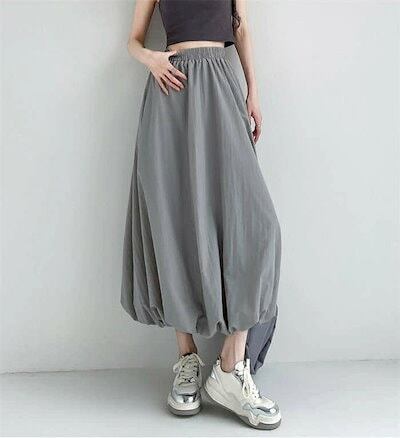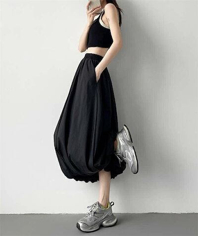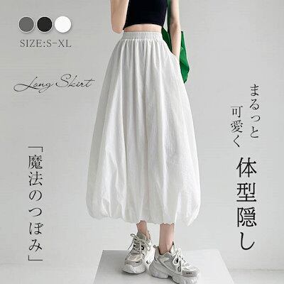 バルーンスカート レディース ロングスカート ロング丈 ウエストゴム 楽ちん スカート ボトムス コクーン 春 夏 秋 無地 Aライン シンプル 裏地 ゆったり 大きいサイズ 体型 ポケット付き