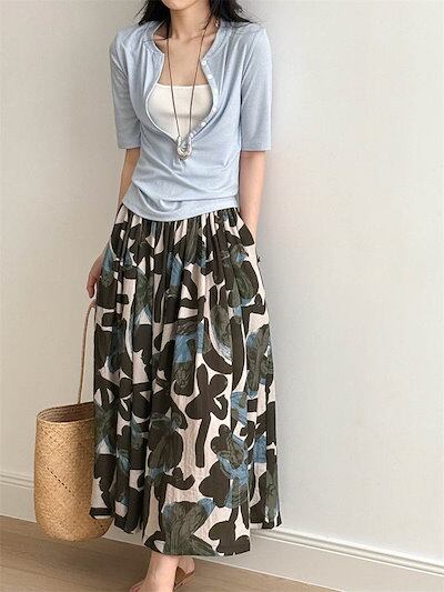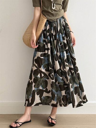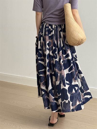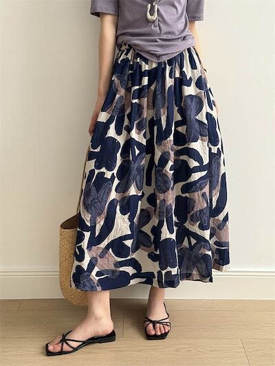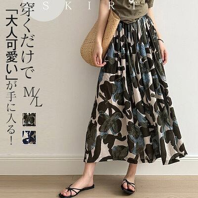 スカート レディース 春 夏 秋 ボトムス フレア ロングスカート 花柄 ミモレ丈 フラワープリント Aライン ゆったり 柄プリント ふんわり おしゃれ きれいめ ウエストゴム 体型カバー かわいい