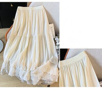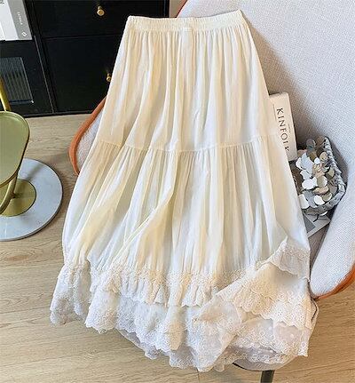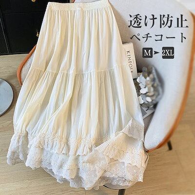 ペチコート レディース ペチスカート ロング レース 夏 春 薄手 ドレスインナー さらさ 透け防止 ゆったり 重ね着 ウエストゴム 無地 軽い スカート 涼しい フォーマル シンプル 上品