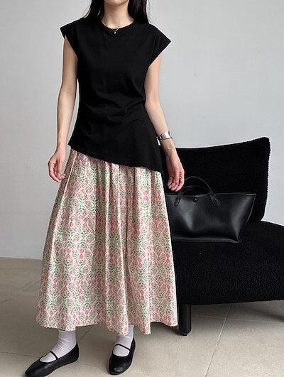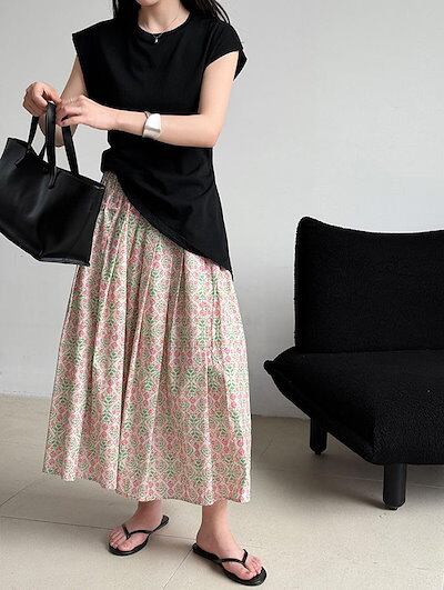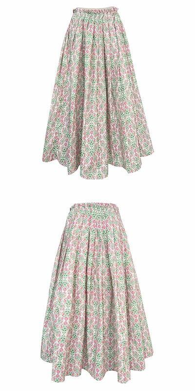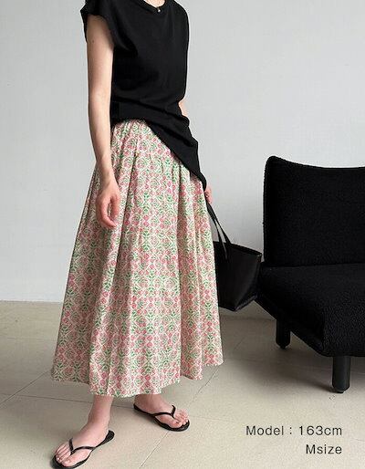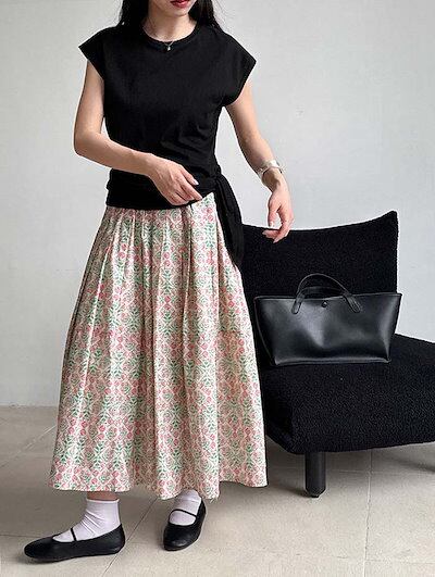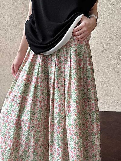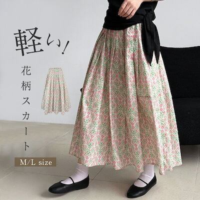 スカート フレア ロング レディース ウエストゴム 花柄 フラワープリント タック ロングスカート フレアスカート 綿100% カジュアル ナチュラル ゆったり コットン 体型カバー 夏 秋 大き