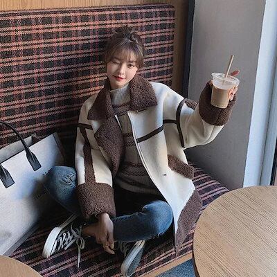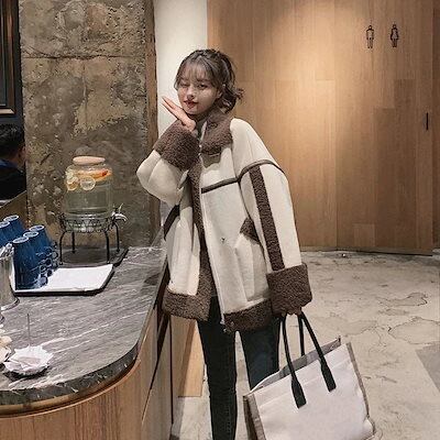 ジャケット 冬アウター 韓国ファッション 防寒 ブルゾン ダウン ラムズウール フリースで決まり!キルティングアウター ジャンパー 皮毛一体 アウター