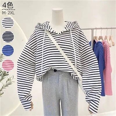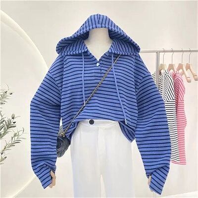 パーカー ゆったりスウェット レディース 秋冬 韓国ファッション レトロストライプ 長袖トップス ゆったり百掛け カジュアル着痩せ 長袖 Tシャツ