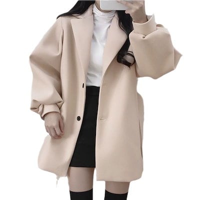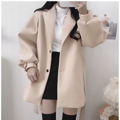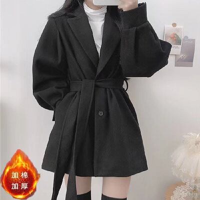 チェスターコート 冬アウター 気質のある新しい韓国風の秋冬服 小さなスーツの襟 ミドル丈のウールの のコート 韓国ファッション
