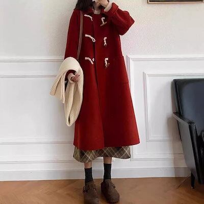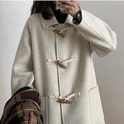 チェスターコート 冬アウター 無地ホーンボタンウールコートレディース2024秋冬新作厚みのあるリトルカレッジスタイルジャケット 韓国ファッション