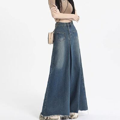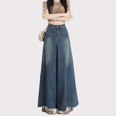 デザイン感 レトロ ワイドパンツ デニムパンツ レディース ハイウェスト ゆったり スリム見え 百掛け 流行り キニーパンツ
