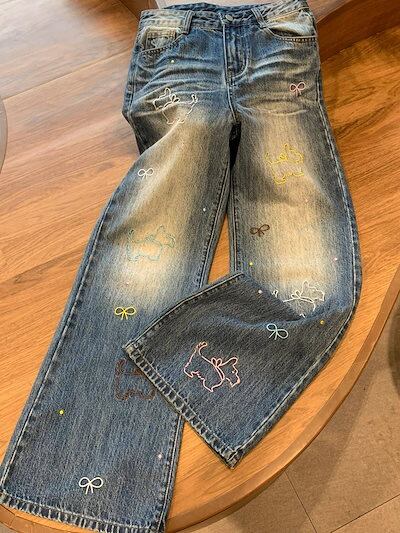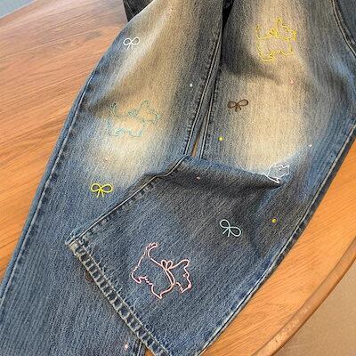 アメリカの高街アニメデザイン感ストレートジーンズ女性秋レトロ高腰広脚長ズボン