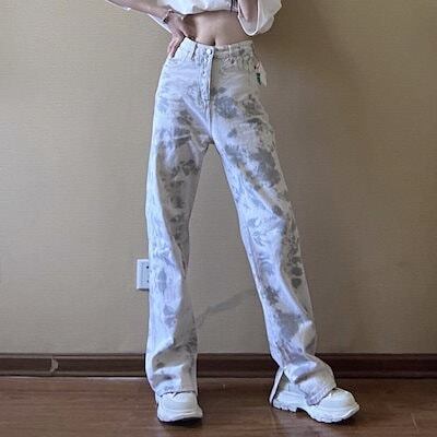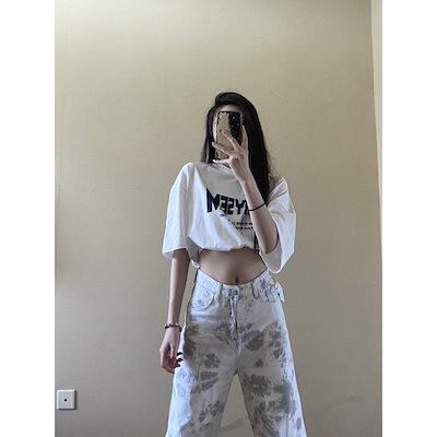 アメリカの背の高いジーンズのレトロな染めズボンinsゆるいストレート迷彩工装ズボンの工装長
