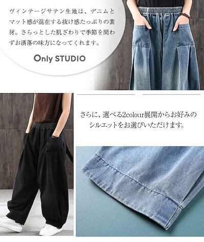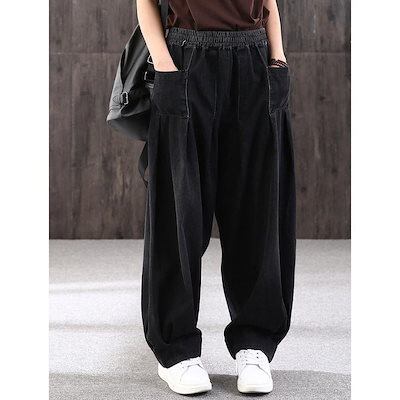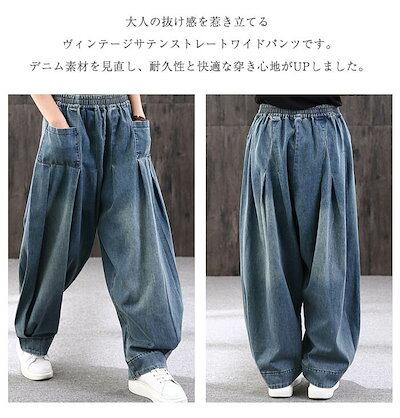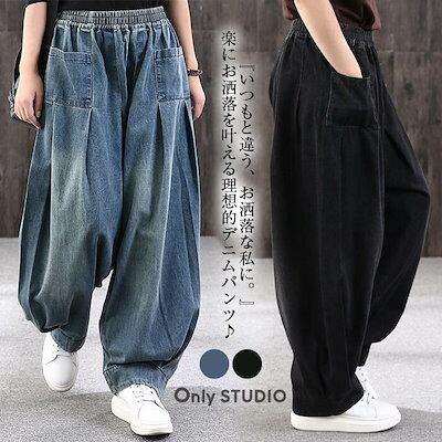 ワイドパンツレディースパンツロングパンツウエストゴムサイドポケットパンツデニムパンツコクーンデニムサーカスパンツパッチワークウエストゴムアンクル丈ワイドパンツお洒落ワイドバルーン