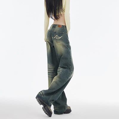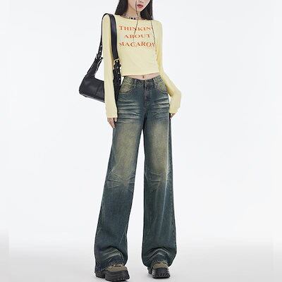 アメリカのレトロなジーンズの女性春秋はゆったりとしていてやせているストレートパンツの垂れ下がった感じがします