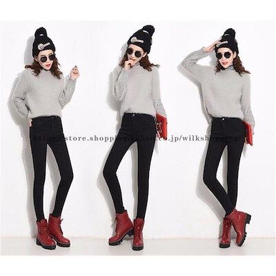 スキニーデニム レディース デニムパンツ 裏起毛 暖かい 美脚 安い 無地 ロング丈 スキニー 伸びる ストレッチ 伸縮