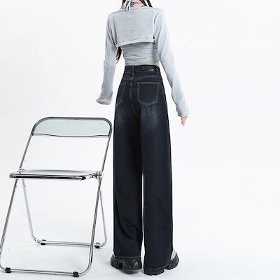 紺色の広脚ジーンズ女性の新型高腰直筒ゆるい小柄な痩せたズボン