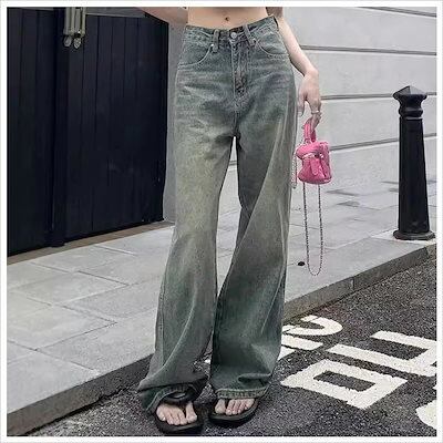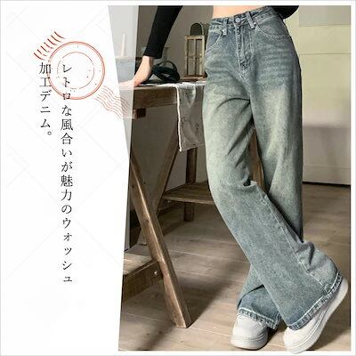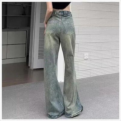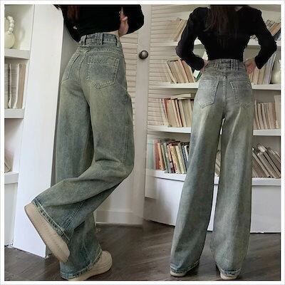 レトロ デニム ワイドパンツ レディース ゆったり ジーンズ ハイウエスト ビンテージ風 春 秋カジュアル おしゃれ 体型カバー 大きめストリート系 シンプル コーデ