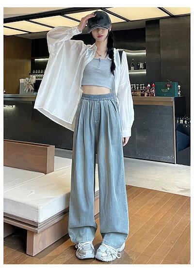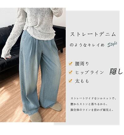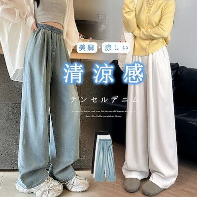 デニムパンツ レディース ワイド 接触冷感 パンツ テンセルデニム 冷感 ロング丈 ボトムス ひんやり ストレートパンツ デニム 落ち感 体型カバー 着痩せ テンセルデニムパンツ 冷え 涼しい 夏デ