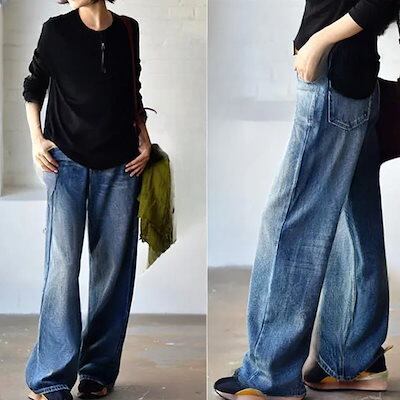 ハイウエストモップパンツゆったりストレートパンツレディースデニムパンツ ジーンズ