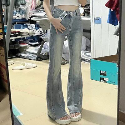 2024新作ズボン レディース 脚長効果 美脚効果 細見え ワイドパンツ デニム ズボン レディース ロングズボン モップパンツ デニムボトムス デニムパンツ