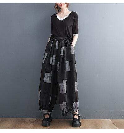 「ファットガール」 夏 九分丈 ワイドパンツ ゴム 体型カバー 大きいサイズ ゆったり レディース