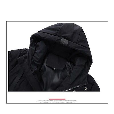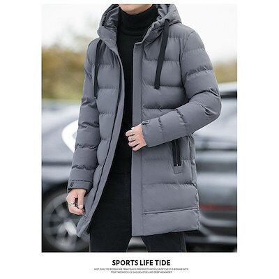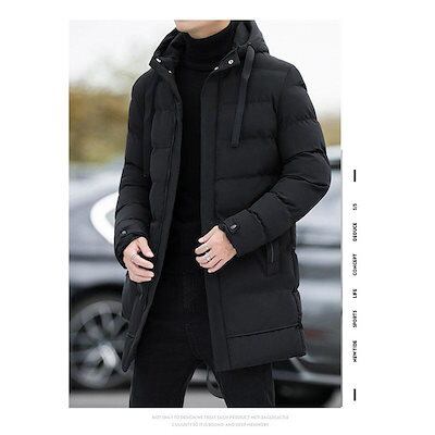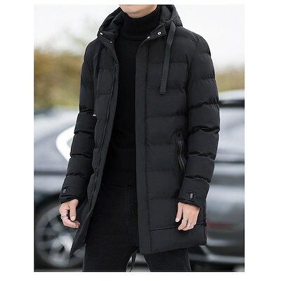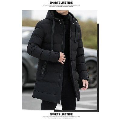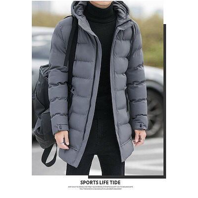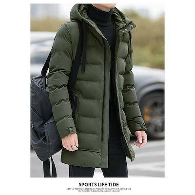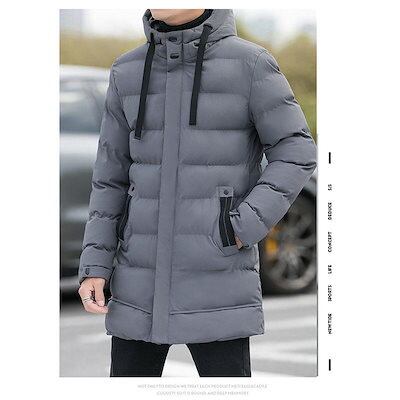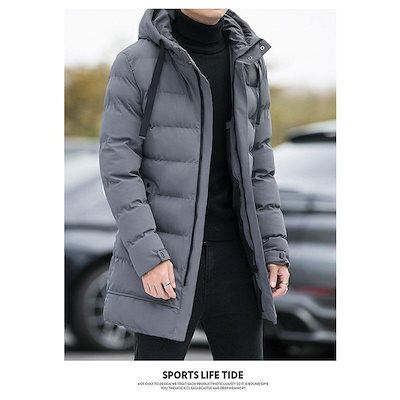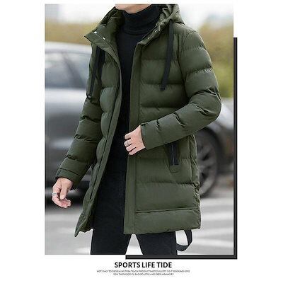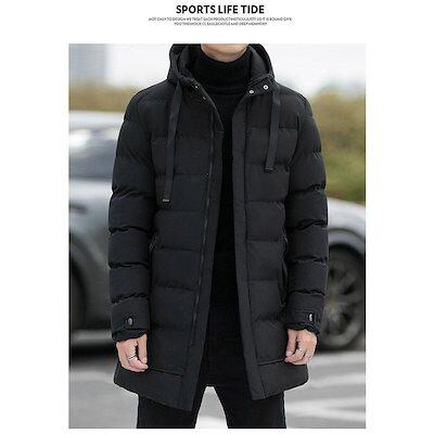 万能流行感 ダウンジャケットメンズ 中綿コートアウター ロングコートフード付き 膝下 細身 無地 厚手お出かけ 暖かい 防寒対策 防風 あったか カジュアル