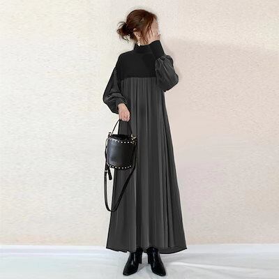 ワンピース レディース ロングワンピ 上品 ロングワンピース 体型 秋冬 カバー 長袖 お洒落 通勤 旅